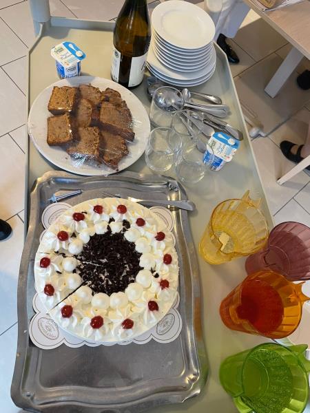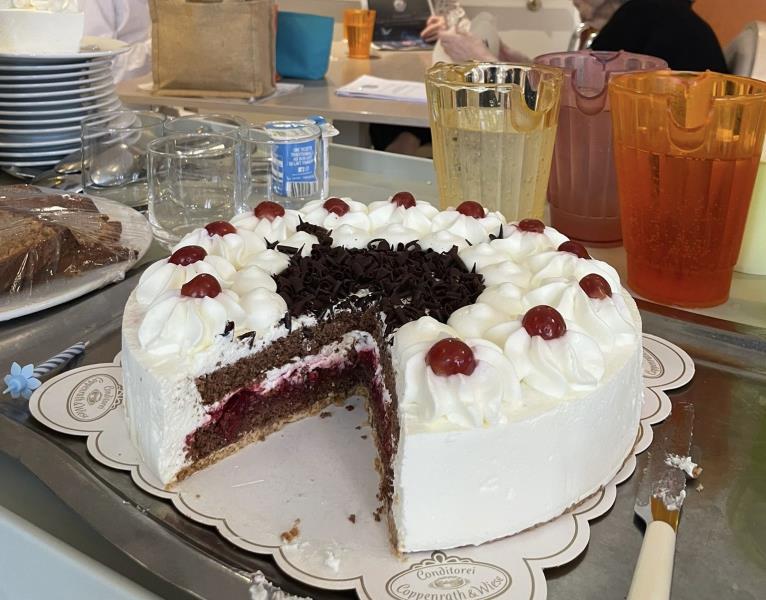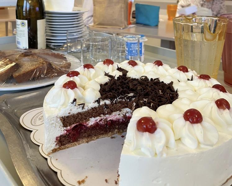 L’après-midi, c’est le moment fort : le résident du jour souffle sa bougie sur une jolie forêt noire. Les autres résidents et le personnel se rassemblent pour chanter, échanger quelques mots, rire et partager un morceau du gâteau dans une ambiance conviviale et bienveillante.