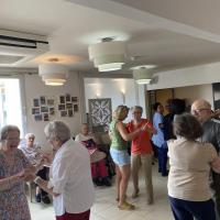 Publiée le 10/07/2024Guitare, Accordéon, Caisse claire et Contrebasse : comme un air de Bal musette Une petite ambiance bal musette résonne dans les étages aux Marines. Résidentes, résidents, familles, aides-soignantes, dansent dans les salons des 4 étages. Chansons d’antan et contemporaines. Un bel après midi dans la joie, le [...] Lire la suite