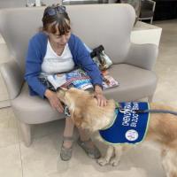 Publiée le 07/10/2023Vendredi 6 octobre dans la matinée deux invités aux Marines. Samba, une jeune Golden Retriever de 21 mois et Cindy Psychomotricienne, Thérapeute, sa maitresse ont fait une visite surprise aux résidents. Un premier contact qui fait l’unanimité procurant une grande joie et des interactions déjà très affectueus [...] Lire la suite