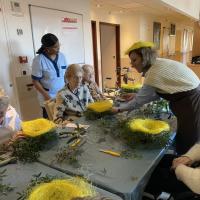 Publiée le 07/04/2023Mardi 4 avril l’atelier d’Art Floral s’invite au 4ème étage, la proposition du jour : La confection d’un petit nid douillet composé de fleurs, de feuillage et d’œufs de Pâques. Un bel après midi créatif au couleur du printemps. Prochain rendez-vous au mois de Mai. Lire la suite