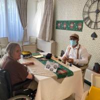 Publiée le 26/05/2022Jeudi 26 mai 2022 en salle à manger, on pousse les tables et les chaises… A 15h le Dance Floor est ouvert ! Mambo, tcha tcha, Madison, Valse…. C'est parti! Convivialité, très bonne humeur… Tous les résidents ne peuvent pas danser, chacun profite et participe à sa mesure, la musique d [...] Lire la suite