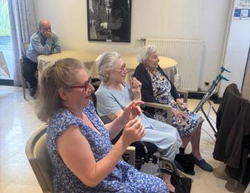 Ce lundi après-midi, nos résidents ont vécu un très beau moment de partage et de convivialité grâce à l’activité chorale animée par Suzanne, l’une de nos soignantes passionnée de chant.