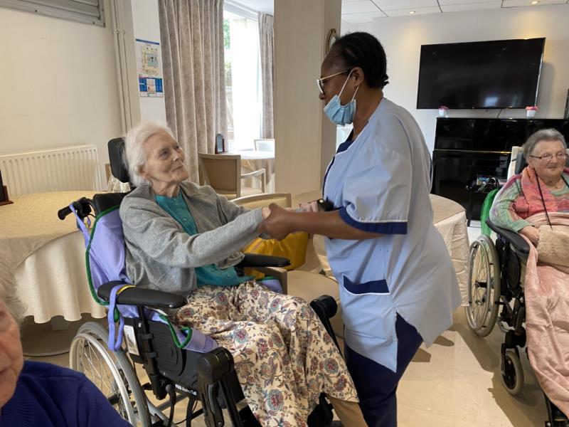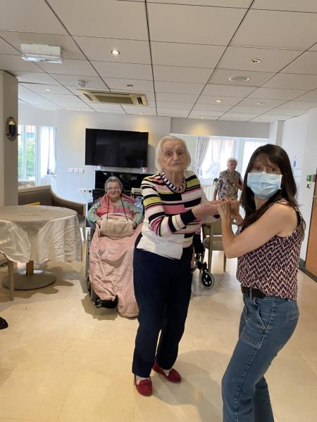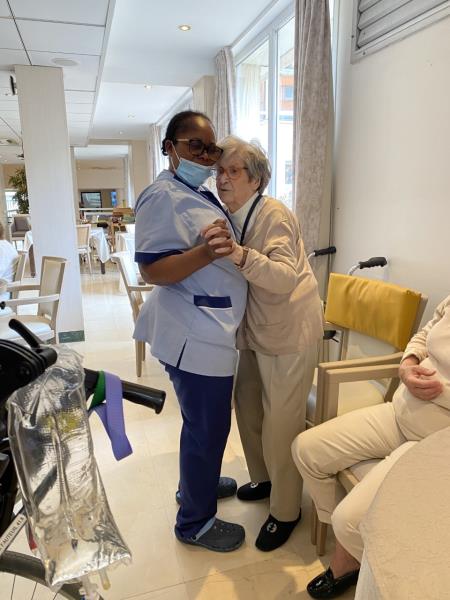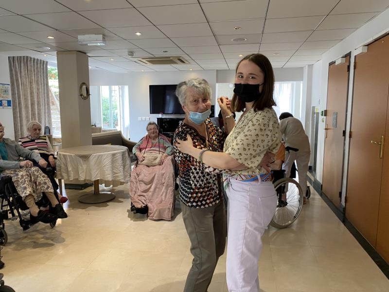 Un très bon moment de rires et de partage, de légèreté, entre les résidents, les familles et le personnel qui improvisent ensemble des chorégraphies très spontanées.